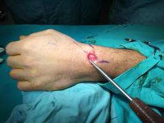 Χρησιμοποιώ τεχνικές ελάχιστης παρέμβασης (Μinimal Ιnvasive Surgery), όπως και άλλοι χειρουργοί χειρός διεθνώς. Η επέμβαση γίνεται μέσω μιας τομής 1 εκατοστού, υπό διεγχειρητικό ακτινοσκοπικό έλεγχο. Το διεγχειρητικό τραύμα ελάχιστο, δεν χρειάζεται μετεγχειρητική ακινητοποίηση και η πώρωση είναι ταχύτερη, καθώς δεν έχει επηρεαστεί περαιτέρω η αιμάτωση του σκαφοειδούς.