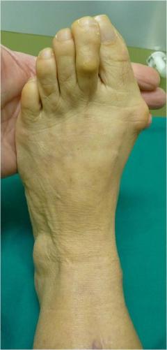 Apart from the cosmetic appearance of the foot patients usually complain of pain at the first metatarsophalangeal (MTP). The deformity deteriorates over the years and may be associated with metatarsalgia (pain at the metatarsal heads) which requires a more sophisticated approach. There are various types of splints on the market that may somehow alleviate discomfort but are unable to halt the development of the deformity.